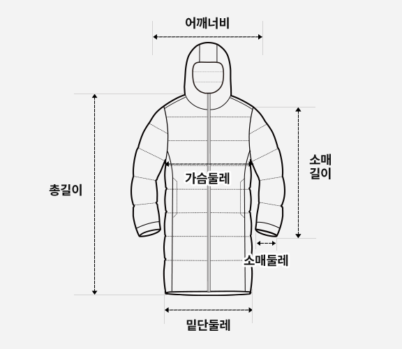 | 소매길이 | 63 | 64 | 65 | 66 | 67.5 | 69 | 70.5 |